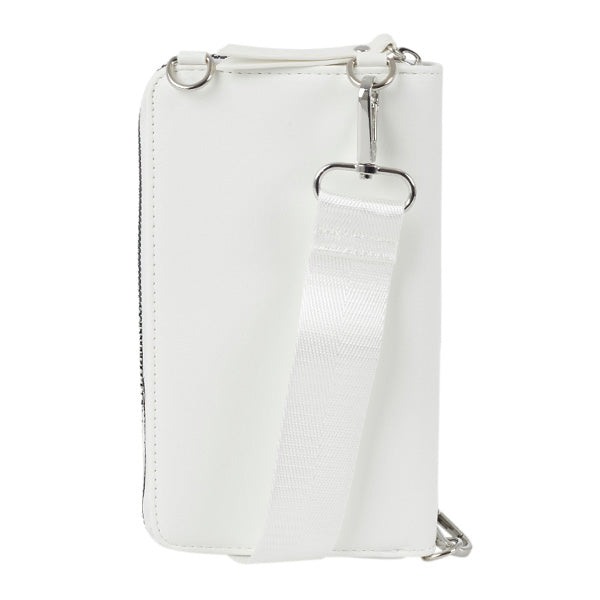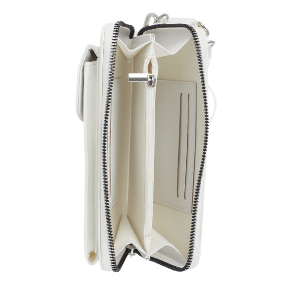 Foran har vesken en utvendig lomme med en klafflukking som lukkes med magnet, ideell for å oppbevare en stor mobiltelefon slik at du enkelt kan ta den opp når du trenger den. I tillegg har vesken en romslig glidelåslomme. Inne i denne lommen finner du en liten glidelåslomme og flere kortlommer, perfekt for å organisere småtingene dine.